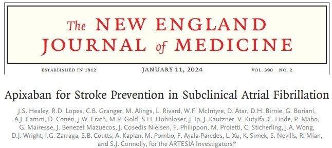 O estudo ARTESIA mostrou que entre pacientes com episódios de fibrilação atrial subclínica e fatores de risco para acidente vascular cerebral, o risco de acidente vascular cerebral ou embolia sistêmica foi menor em 37% (IC 95%, 12 a 55) com apixabana do que com aspirina, e o risco de acidente vascular cerebral incapacitante ou fatal foi inferior em 49% (IC 95%, 12 a 71), sendo que a apixabana não resultou em taxas substancialmente mais altas de transfusão, sangramento fatal, acidente vascular cerebral hemorrágico ou outras hemorragias intracranianas do que a aspirina. Esse paradoxo de comparação é importante, pois o estudo AVERROES (do mesmo grupo do ARTESIA), já havia demonstrado mesmos desfechos para a Fibrilação Atrial Clínica, e considerar o cenário de anticoagulação, não apenas pelo número de eventos vasculares x sangramentos é importante para o manejo do paciente neurológico.